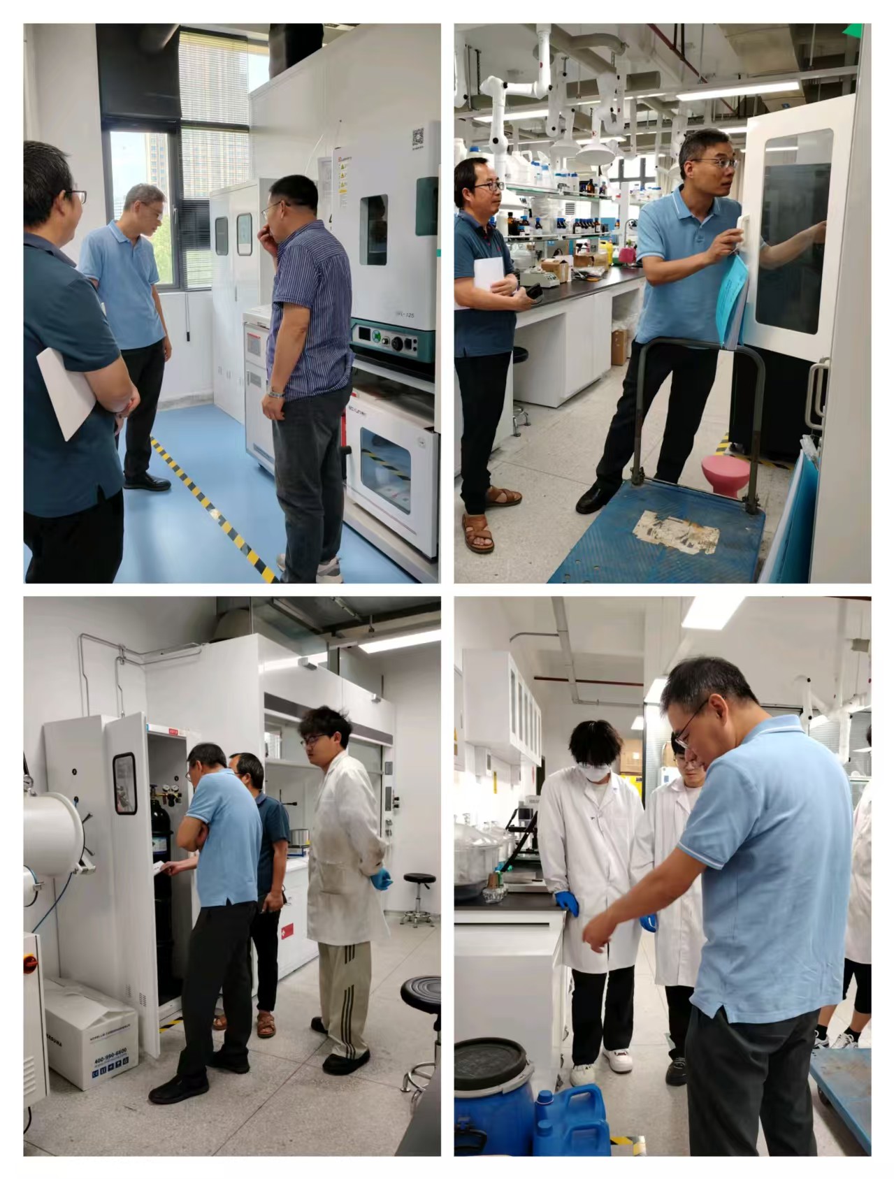 实验室与员工宿舍是此次检查的重点区域。在实验室,顾绍金一行对实验室危化品的出入库台账、存储环境温湿度等进行逐一核验,同时对消防设施、用电线路等重点部位开展 “地毯式” 排查,确保隐患早发现、早处置。