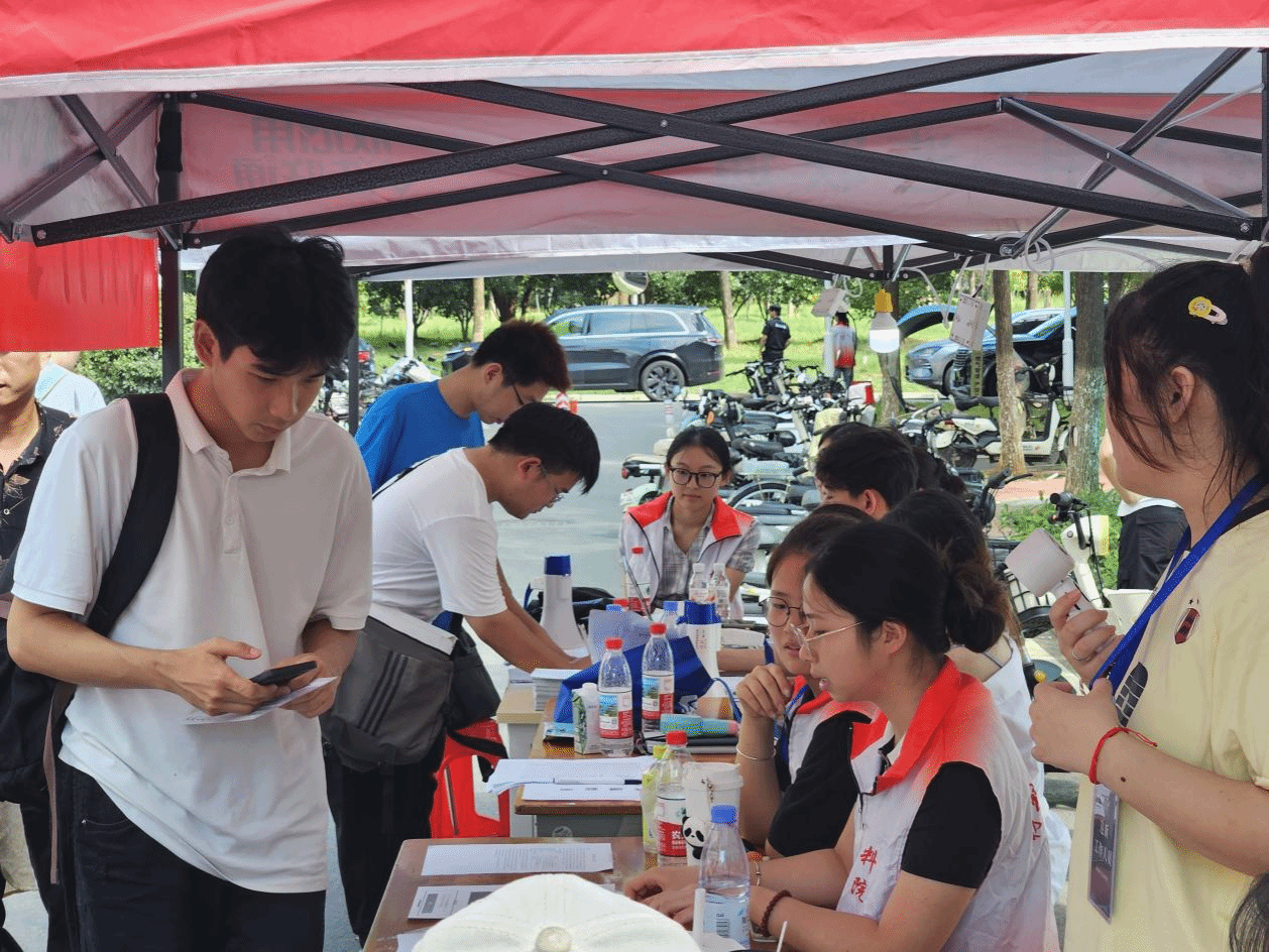 公司组建“党员先锋服务队”,让党旗飘扬在迎新一线,迎新现场,党员志愿者穿梭于人群中,为新生及家长提供校园地图指引、报到流程讲解等精准服务。