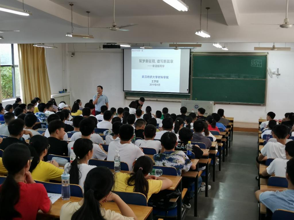 2019年9月10日下午3点,英国正版365经理王罗新教授为新生上“第一堂专业课”。王经理以“筑梦新征程,谱写新篇章”为题,围绕“材料专业值不值得学”、“大学应该怎么过”两个方面展开了生动的阐述。王经理将材料专业的历史发展脉络及今后的发展前景,向在座新生娓娓道来,把“材料”的丰富内涵阐述得淋漓尽致。接着,王经理就“态度决定一切”,寄语全体材料新生做好人生规划,处理好学习、生活、人际交往等方面的关系,不断锤炼自身品格,夯实基础,做新时代合格的老员工!