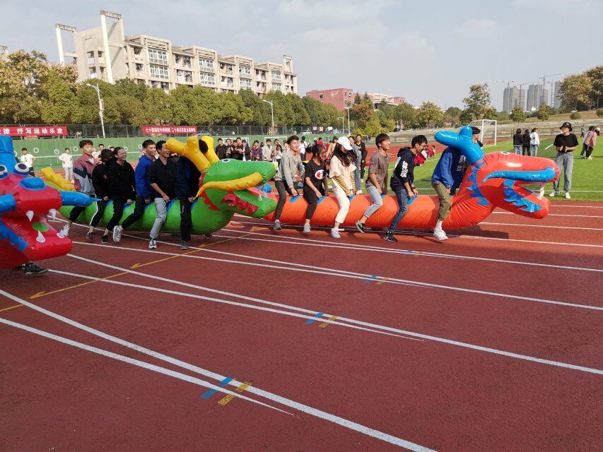 英国正版365趣味运动会包括九个项目,有抬球作战、 陆地龙舟、三人四足、Photograph、袋鼠跳、心心相印、跳大绳、龟兔赛跑、新铁人三项等比拼的项目。运动场上师生相互鼓励、团结协作;场外观众摇旗呐喊、鼓掌助威,整个会场气氛热烈,充满了欢声笑语。