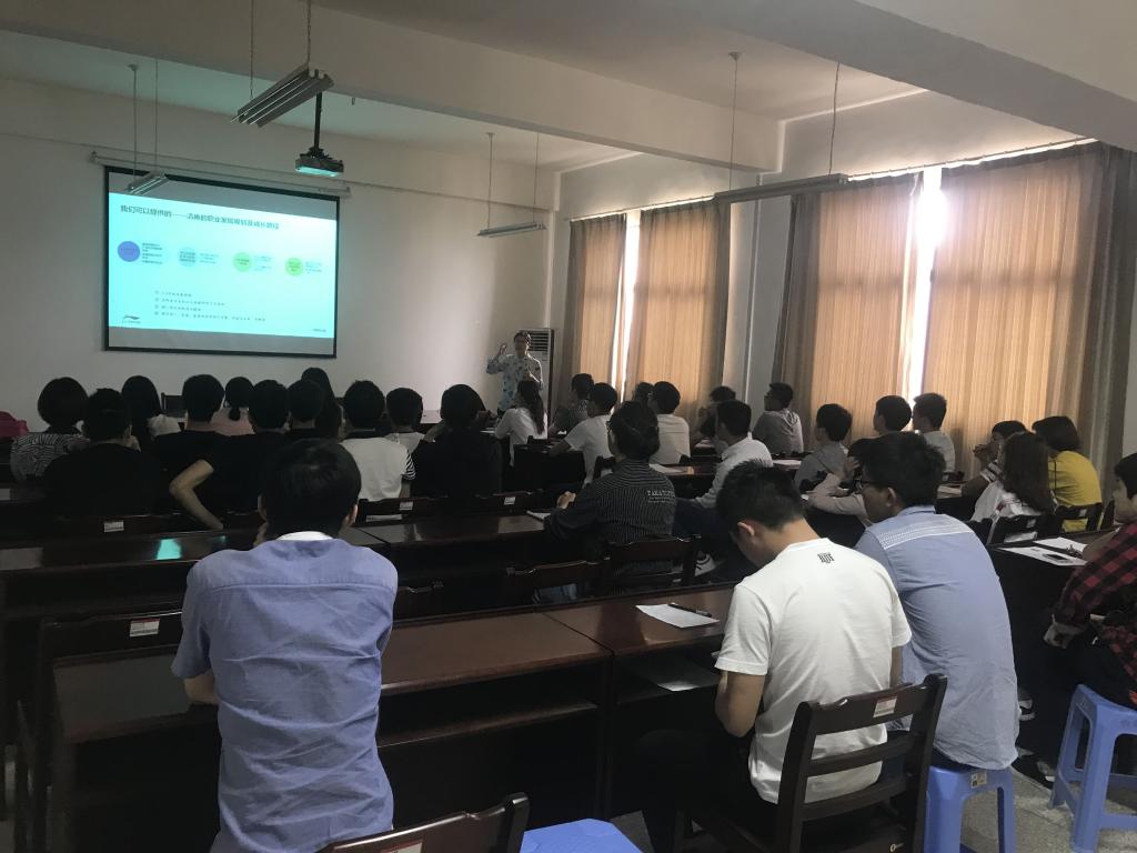 此次招聘会特别邀请了李宁公司北京总公司、广东分公司和武汉分公司人力资源负责人以及365英国上市99级优秀员工邵传芳,部分2014级员工参加了此次会议。