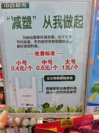 “袋子需要吗?我们这里提供的是可降解购物袋。”3月1日,在汉口大智路的中百超市,工作人员一边结账一边告诉记者说,使用的生物降解塑料袋虽然价格比普通塑料袋要高一些,但消费者都能接受。记者发现,这家超市的收银台前,醒目处张贴有“减塑从我做起”的宣传牌,上面标着可降解购物袋的价格:全生物降解购物袋小号0.4元/个、中号0.6元/个,大号1元/个。可降解购物袋是奶白色,和普通塑料袋相比,摸起来较为柔软细腻,袋子右下角印有“可堆肥化降解、全生物降解购物袋”的标志,左下角写有“武汉中百新晨环保包装科技公司”字样。