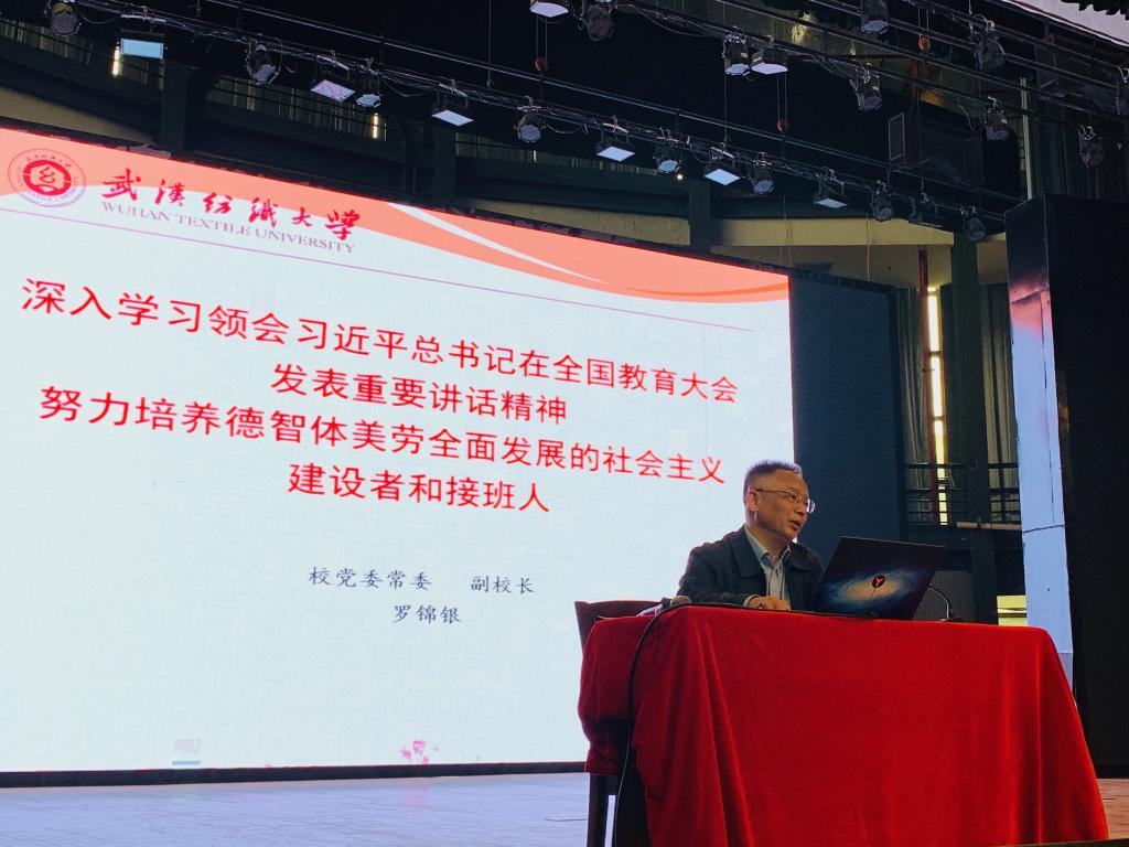 随后,公司党委常委、副董事长罗锦银教授为在场师生作了题为《深入学习领会习近平总书记在全国教育大会发表重要讲话精神 努力培养德智体美劳全面发展的社会主义建设者和接班人》的专题报告。