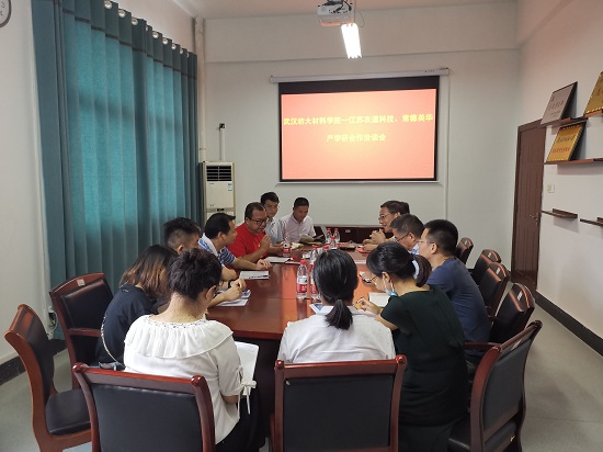 王罗新代表公司对桑总和刘总一行来访表示热烈欢迎,并向与会客人介绍了公司的科学研究、社会服务等基本情况。随后双方就开发新产品(如:可降解尼龙、高强高伸纤维、阻燃尼龙等)、新工艺(给纱线赋予新的后工序来获得新功能新特性)等详细技术问题上展开了深入交流,着重讨论了合作切入点并论证其产业化的可实施性等。最后,双方就共建联合研发中心、共同申报科技项目、组织员工实习实践、毕业生招聘等事宜进行了充分的沟通和交流,并达成了初步合作意向。