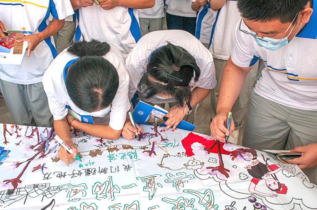 民族团结一家亲,各民族要像石榴籽一样紧紧的抱在一起。实践团成员和精河高中员工共画一副新疆棉爱国画,共同表达浓浓的爱国之情。同学们非常有想法,并在画上写下民族团结的字样。此外,同学们还通过明信片与纺大学子来了一场“隔空对话”,传达着彼此的想法和祝福。