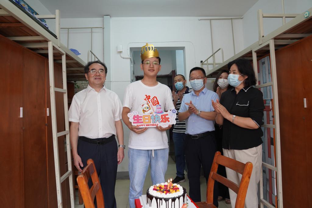 9月9日,公司迎来了2022级新生,公司党委书记田辉玉,公司办公室主任高建勋,学工部部长张莎莎,公司党委书记陈桂枝、副书记侯畅及新生辅导员胡晓一行来到新生宿舍,特地为刚报到的新生苑星宇同学庆祝生日。