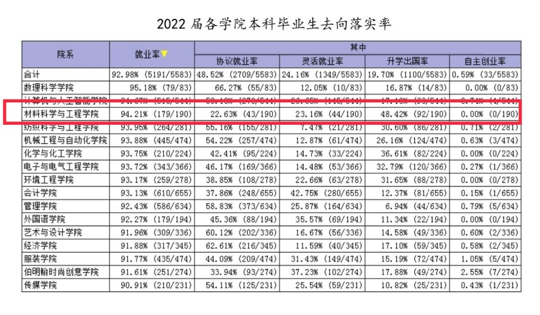 公司2022届本科生考研报考率73.1%,录取率48.5%,班级最高录取率达56.8%,考研录取率历史新高。2022届本科毕业生就业率达到94.51%。