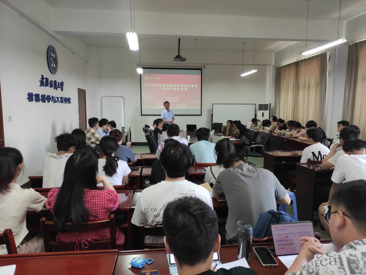 会上,王罗新鼓励同学们选定一个适合自己的目标并为之努力奋斗,坚定信心、坚持到底,公司和老师会做同学们的坚强后盾。高分子系主任左丹英、专业老师谭海英、高分子12001班班主任秦艳敏分别发言,在明确考研初心、选择目标院校和专业、坚定考研信心等方面为员工提出参考建议,希望同学们考研顺利。