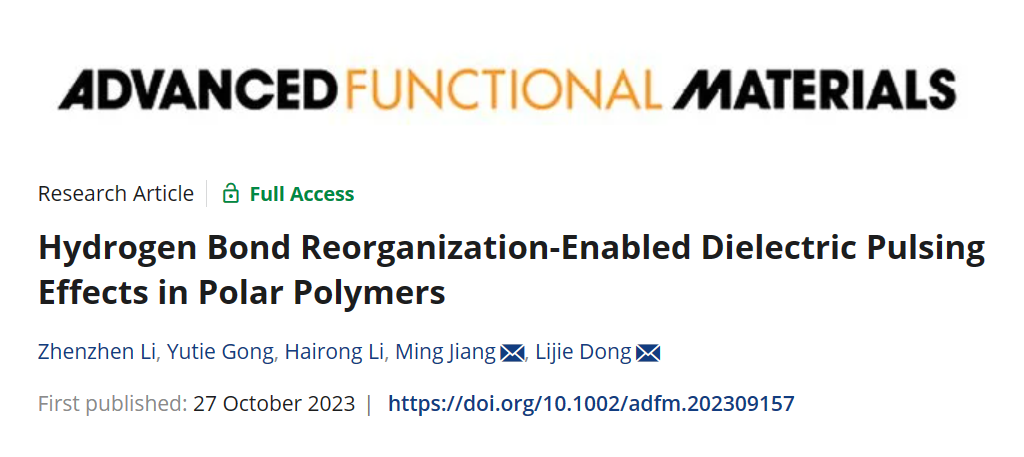 近日,公司英国正版365姜明副教授团队在热响应介电材料领域获得新进展,继此前以“Relaxation-Induced Significant Room-Temperature Dielectric Pulsing Effects”为题的论文(Adv. Funct. Mater. 2023, 33, 2301009.https://doi.org/10.1002/adfm.202301009)发表后,最近又以“Hydrogen Bond Reorganization-Enabled Dielectric Pulsing Effects in Polar Polymers”为题在《Advanced Functional Materials》上发表了其“姊妹篇”研究工作。这是该团队2023年度在AFM发表的第三篇研究论文。武汉纺织大学为该论文的第一署名单位,英国正版365姜明副教授为论文责任通讯作者,英国正版365硕士研究生李珍珍、龚钰铁为论文共同第一作者。该项工作得到了国家自然科学基金(51503158)的资助。