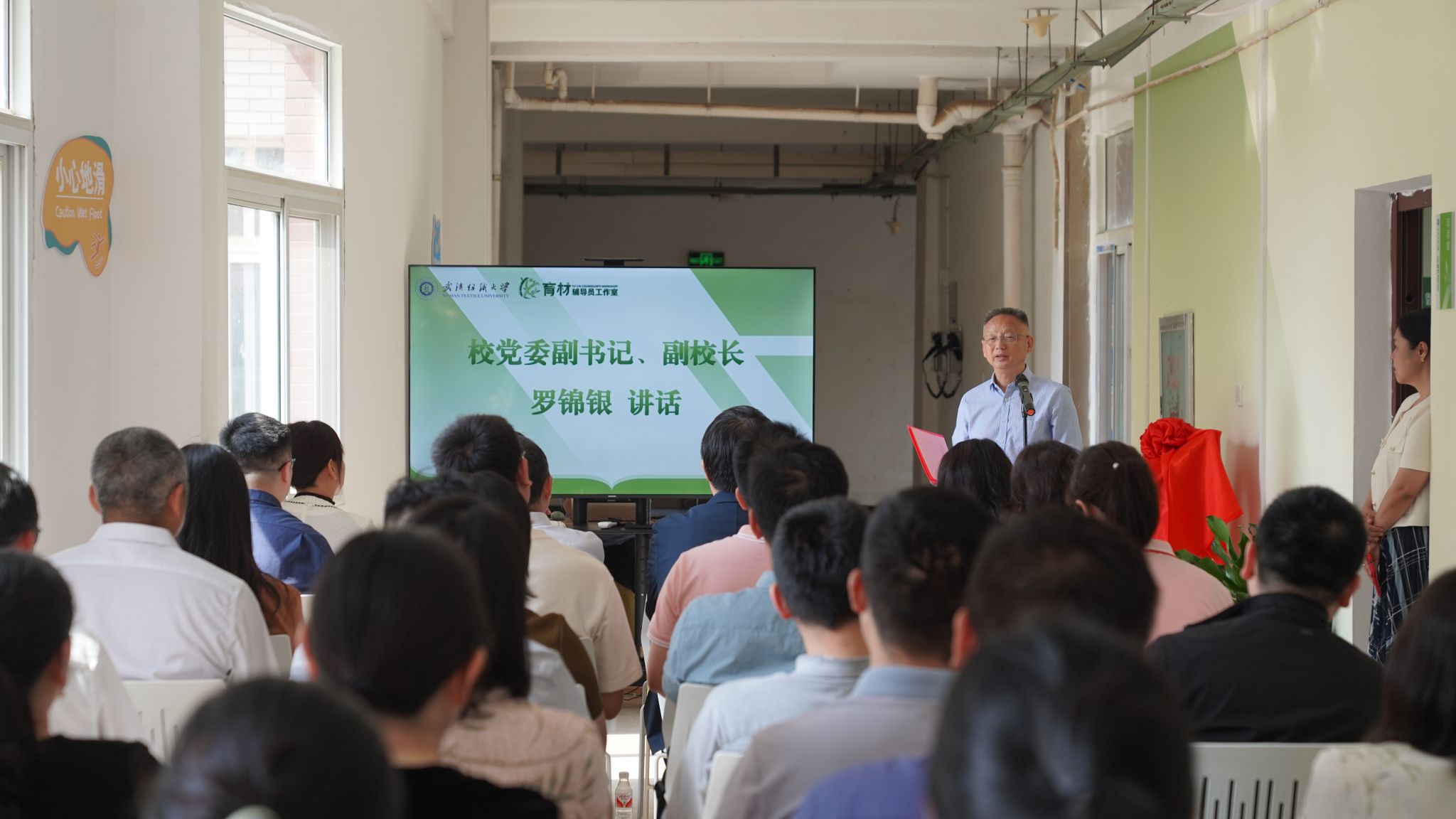 罗锦银为“育材”辅导员工作室成立致辞。他表示公司高度重视辅导员工作室的建设与育人实效,要通过“育材”辅导员工作室建设激励一批、影响一批、扶持一批辅导员工作室建设与发展,积极打造员工工作精品,推广工作成果,助力员工成长成才。一是要立足公司特色,聚焦员工成长问题,服务员工发展,切实提升工作室围绕员工、关照员工、服务员工的能力和水平。二是立足小切口、讲好真道理,围绕员工日常工作,提升工作水平,为员工指路领航。三是立足公司、辐射全校、影响全国,打造工作精品,讲好纺大育人故事,擦亮纺大育人品牌。四是创新制度发展,整合育人资源,逐步形成协同育人合力,各美其美、美人之美、美美与共。公司要以“育材”辅导员工作室成立作为公司辅导员工作新的出发点,以点带面、以面带全,不断推动员工思想政治教育工作提质增效,奋力促进公司员工工作高质量发展。