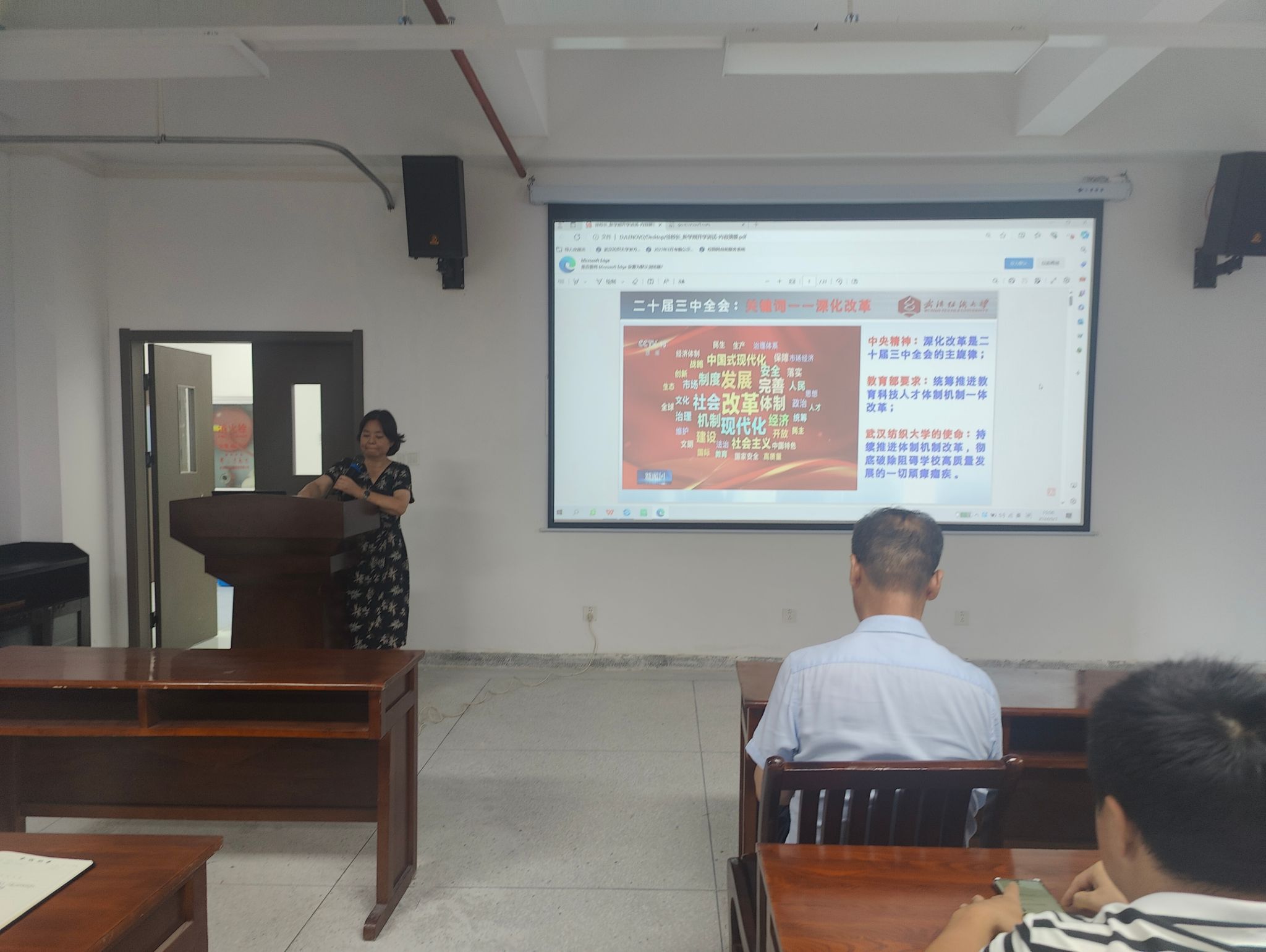 公司党委书记陈桂枝进一步深刻阐述了深入学习贯彻党的二十届三中全会精神及徐董事长在中层干部(扩大)会议上的重要讲话精神的深远意义和重要性。明确指出这是引领公司持续健康、高质量发展的核心动力与根本保障。她强调,全体教职工必须将三中全会精神内化于心、外化于行,不仅要精准把握其精髓要义,更要将其与教育改革新方向、科技创新新趋势、人才培养新要求深度融合,确保理论学习与教育实践的相互促进。