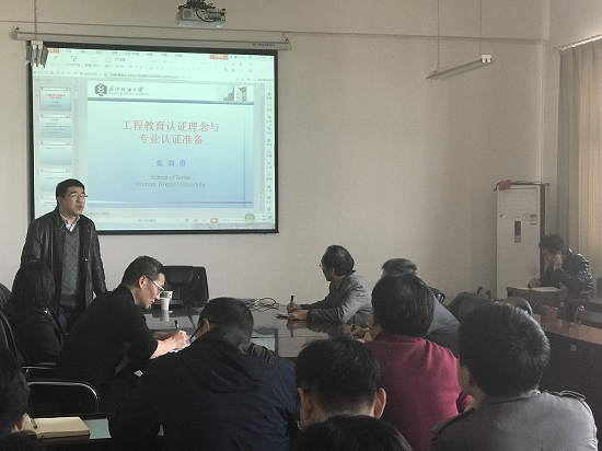 3月15日下午,英国正版365在公司会议室举行了工程教育认证专题辅导讲座,纺织公司党委书记、经理张尚勇教授受邀主讲。全院教职员工参加讲座集中进行学习。