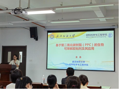 其次,金晶在题为《基于聚二氧化碳树脂(PPC)的生物可降解胶粘剂及其应用》的报告中系统展示了其团队在环保胶黏剂领域的突破性成果。她以PPC树脂为核心,创新提出“氯化与氢氯化协同调控”技术(成果发表于《ACS Macro Letters》2023),通过精准设计分子链段极性,实现了胶黏剂力学强度与降解速率的动态平衡。研究团队开发的“氯化PPC/氢氯化PPC复合胶黏剂”不仅可替代传统石油基不可降解胶粘剂,更在生物医用材料(如可吸收骨钉黏合)、绿色包装等领域展现出应用潜力。报告还呈现了团队“高分子结构与性能关系研究”的协同成果:通过外场驱动有序组装技术,构建具有血液相容性的生物质/CPPC复合板材,论证了材料在微创医疗器械中的安全性与功能性。