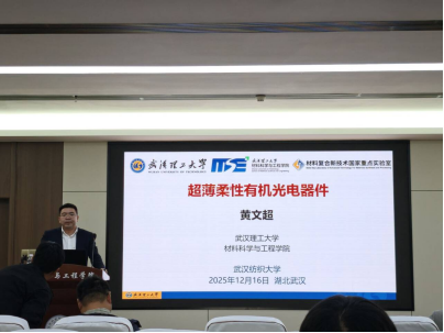 2025年12月16日下午三点至四点,365英国上市阳光校区12-317教室内座无虚席,由英国正版365、湖北省纺织新材料及其应用重点实验室以及纺织新材料与先进加工全国重点实验室联合主办的第911期阳光论坛在这里隆重举行。本次论坛聚焦“超薄柔性有机光电器件”这一重要主题。