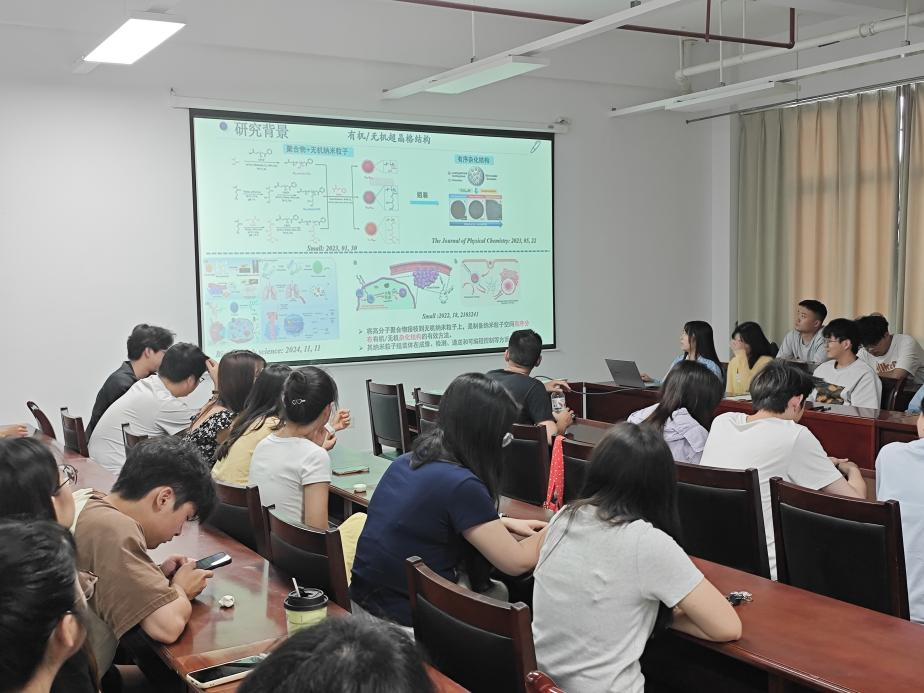 刘红茜同学以《聚合物接枝纳米粒子的受限组装与有序结构调控》为题进行汇报。通过“油/水界面受限组装”技术,首次实现聚合物接枝二氧化硅纳米粒子的多面体超晶格精准构建。通过调控表面活性剂浓度、温度与液滴尺寸,团队成功捕捉到从四面体到二十四面体共24种规则多面体结构。该技术突破为光电子器件、生物传感器等功能材料设计开辟了新维度。