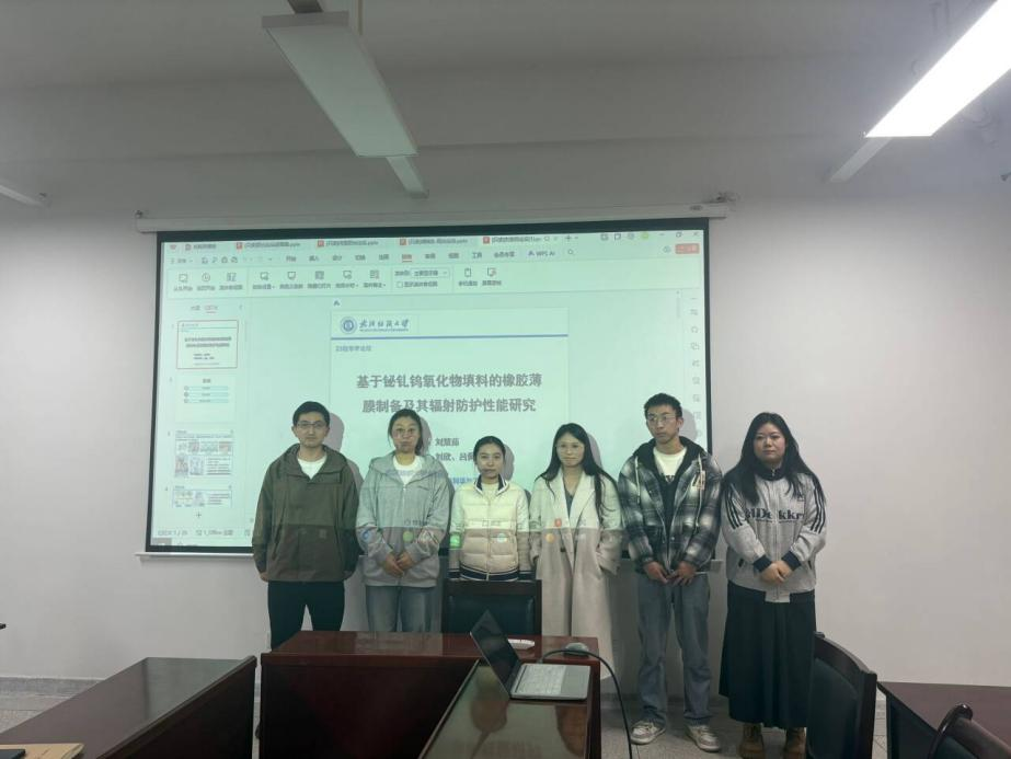 刘慧茹同学以《基于铋钆钨氧化物填料的橡胶薄膜制备及其辐射防护性能研究》为题,针对传统铅橡胶毒性大、柔韧性差等问题,设计合成了核壳结构Bi₂O₃-Gd₂O₃-WO₃复合氧化物粉体。该粉体在天然橡胶基体中均匀分散,制备的80 wt%高填充薄膜对100 kV X射线屏蔽率达92%,0.5 mmPb铅当量面密度仅2.8 kg m⁻²,较传统铅橡胶减重50%,且保持良好的柔韧性和疏水性,为核医学、航天及核应急轻质个体防护装备提供了关键材料支撑。