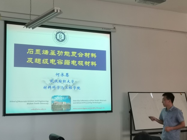 随后,何承恩老师介绍了以石墨烯复合材料为主题首先讲述了石墨烯材料广泛用途,及其科研价值,并围绕着石墨烯与有机聚合物复合材料合成及应用,分别展开讲述了共价修饰石墨烯—功能复合材料的应用以及非共价修饰石墨烯—功能复合材料的应用这两大板块。并讲述了石墨烯复合材料海胆壮,花瓣状,层状等不同结构形态对电化学性能的影响。