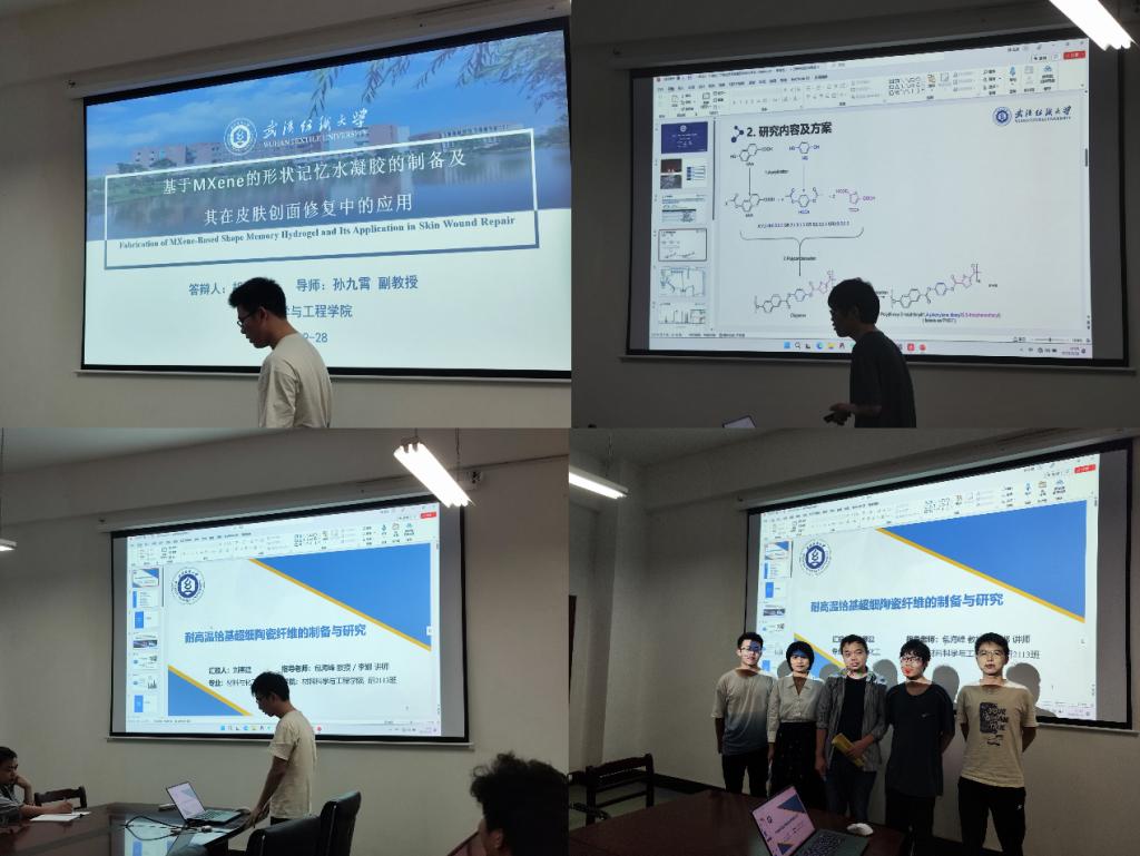 首先,石才杰介绍了他的研究成果,题为“合成与表征富含2,5-噻吩二甲酸全芳族聚酯”。他深入探讨了这种新型材料在材料科学领域的潜在应用,以及其在表征方面的重要性。接下来,刘惠建详细介绍了他的研究题目:“高温耐用陶瓷纤维的制备与研究”,分享了在高温环境下制备陶瓷纤维的方法以及其实际应用性能。最后,胡京川报告了“MXene-Based Shape Memory Hydrogel的制备及其在皮肤伤口修复中的应用”,强调了这项研究在生物医学领域的潜力和应用。