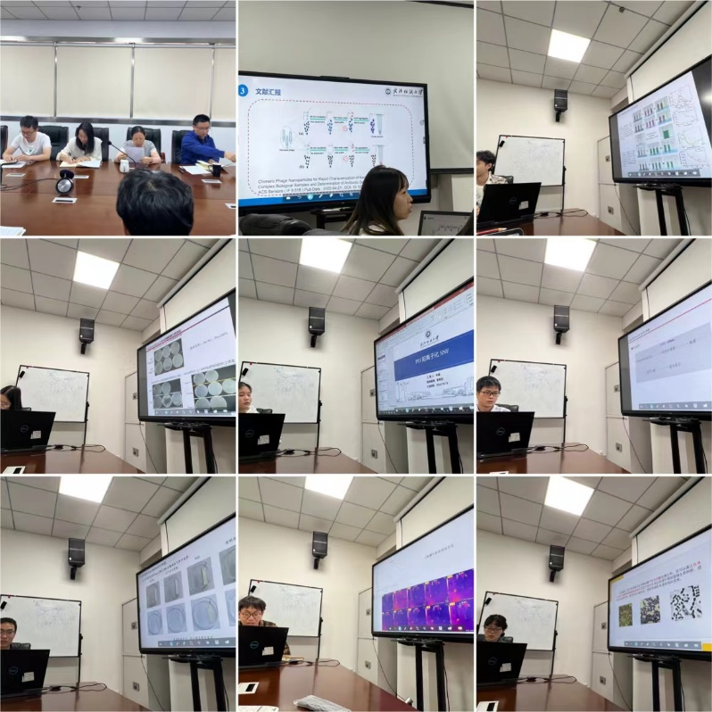 首先,各年级的研究生分别就自己的研究课题内容进行了阶段性研究成果和最新研究进展进行了文献综述。几位老师听取了各位研究生的汇报后,对有进展的研究工作给予了充分肯定,并一道对其中需要改进的方面进行了集中点评,对其中存在的问题展开了激烈讨论。定期的组内研究讨论会,有利于营造良好的学术氛围,把不同学术背景的知识观点与学术思想的相互碰撞与融合,拓宽学术思路与领域,促进学科交叉融合,构建良好的学术生态。通过组会汇报,能系统了解实验近况,对碰撞思维,凝聚方向具有重要意义。