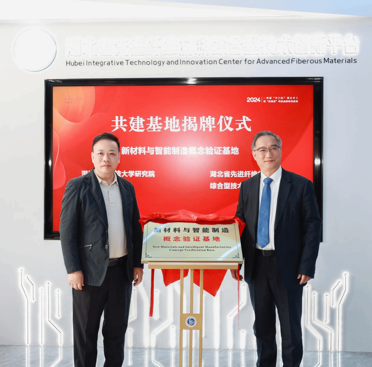 为了进一步推进成果转化,平台与深圳华中科技大学研究院共建“新材料与智能制造概念验证基地”,与稳健医疗创新研究院共建“纤维基高端医疗器械中试基地”,并在2023年首届先进纤维材料产业高质量发展论坛上进行签约。经过前期筹备,在本次活动上,“新材料与智能制造概念验证基地”“纤维基高端医疗器械中试基地”正式揭牌。此次揭牌标志着平台将在新材料、智能智造、生物医用材料等交叉领域进行技术创新与转化,依托基地开展系统性概念验证和中试工作,促进科技成果转化加快转化为现实生产力。