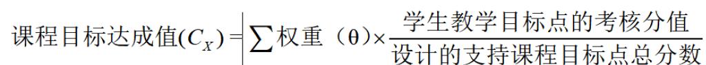 根据教学大纲提出的课程目标,分解课程各个教学环节对课程目标评价的权重(θ),对员工在相应教学环节的课程目标达成进行评价,课程目标各项达成情况按下式计算。
