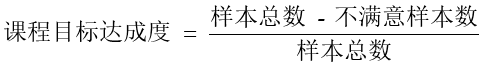 课程负责人组织员工进行课程目标达成满意情况的调查,按照“非常满意、满意、不满意”等多值记录,课程目标评价值是获得的样本总数中取得“满意”及以上的所有样本数总会与全部样本的比值(按下式计算),完成课程质量分析。