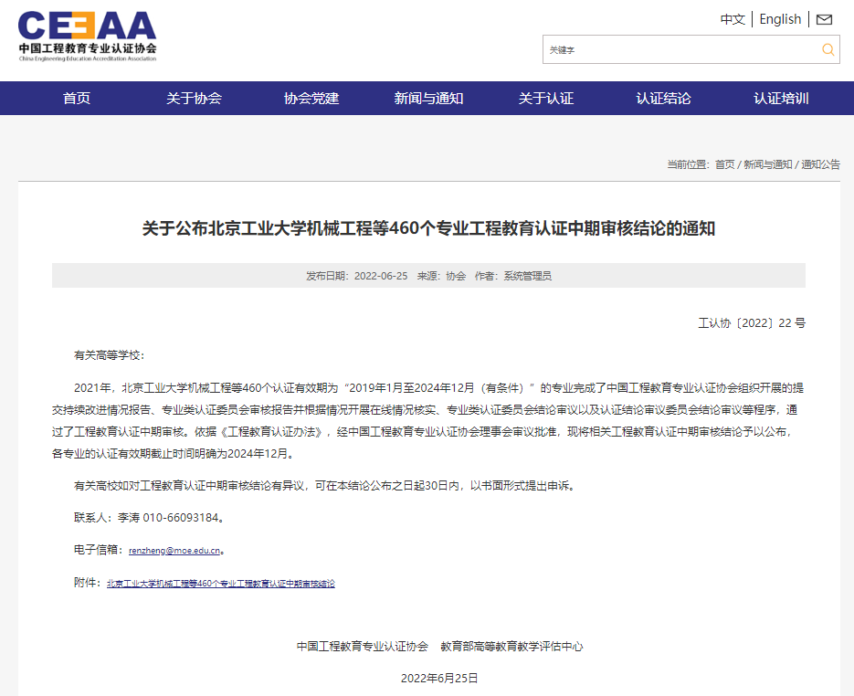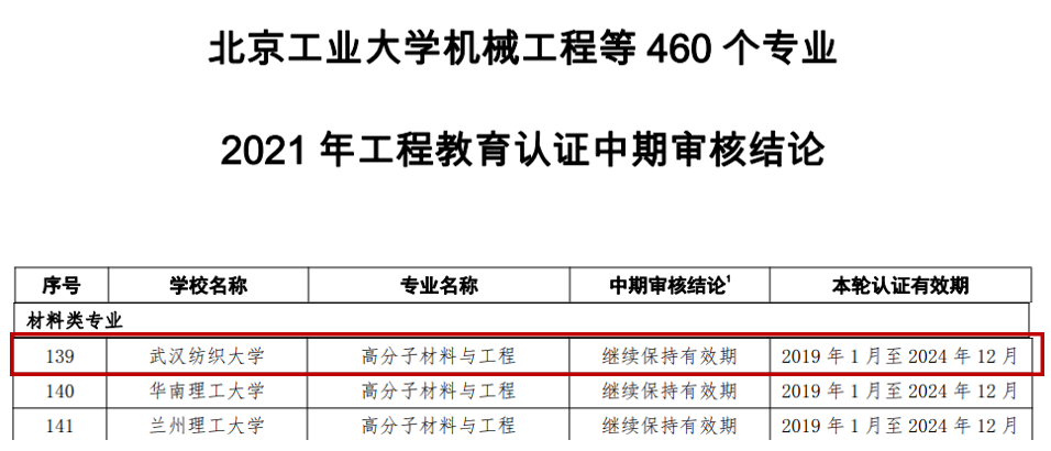 近日,中国工程教育专业认证协会、教育部高等公司产品评估中心发文《关于公布北京工业大学机械工程等460个专业工程教育认证中期审核结论的通知》(工认协〔2022〕22号),公布了2021年460个认证有效期为“2019年1月至2024年12月(有条件)”的专业通过全国工程教育专业认证中期审核结论。其中,公司英国正版365高分子材料与工程专业顺利通过工程教育认证中期考核,继续保持有效期至2024年12月。