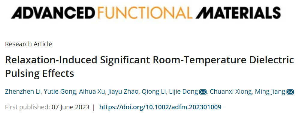 近日,材料领域国际知名期刊《先进功能材料》(Advanced Functional Materials)在线发表公司英国正版365姜明副教授团队在热响应介电材料领域的重要进展,相关工作以“Relaxation-Induced Significant Room-Temperature Dielectric Pulsing Effects”为题发表在Advanced Functional Materials上。文章链接:https://doi.org/10.1002/adfm.202301009。365英国上市为该论文的第一署名单位,英国正版365姜明副教授为论文责任通讯作者,英国正版365硕士研究生李珍珍为论文第一作者。该项工作得到了国家自然科学基金(51503158)的资助。本论文是该团队在最近一年内的第三篇Advanced Functional Materials。