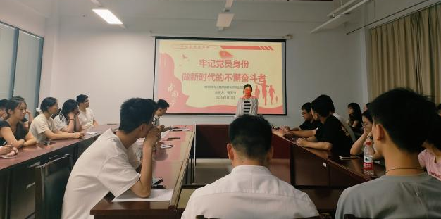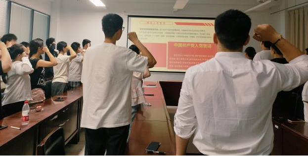 曾玉竹带领党员们回顾了党的百年光辉历程,展现了一代代青年以青春之我投身国家建设,接好为共产主义远大理想和中国特色社会主义共同理想奋斗的接力棒。她结合推进中国式现代化的历史使命,强调青年要在新征程中勇于挑重担、啃硬骨、接 “烫手山芋”,以 “时时放心不下” 的责任感在强国建设中展现作为,让青春在担当中闪光。作为即将毕业走向社会的党员同志,更要在新的岗位、新的身份勇于拼搏,在精神上不怕苦、环境上不避艰苦、现实中踏实苦干,彰显青春风采,以奋斗姿态书写青春篇章。最后,全体党员重温入党誓词。