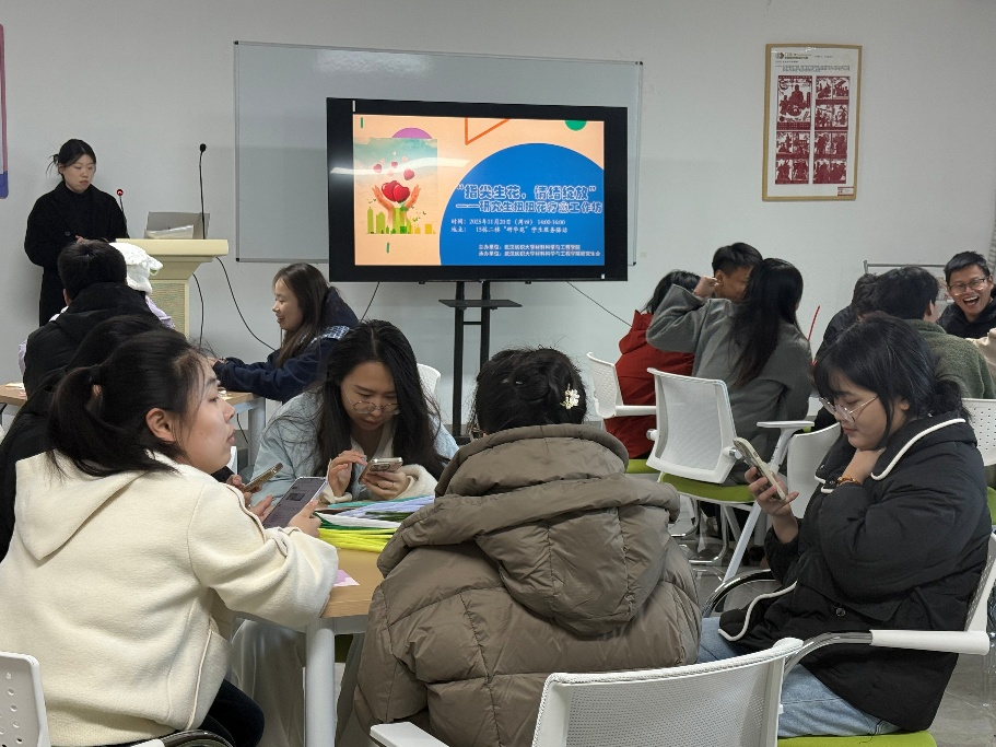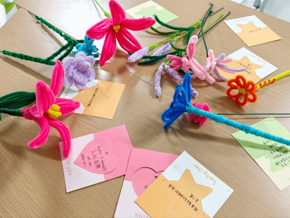 工作坊以“以手作聚焦当下,以花语传递心声”为主题,分为“巧手扭花·专注解压”与“以花为信·情绪漂流”两个环节。