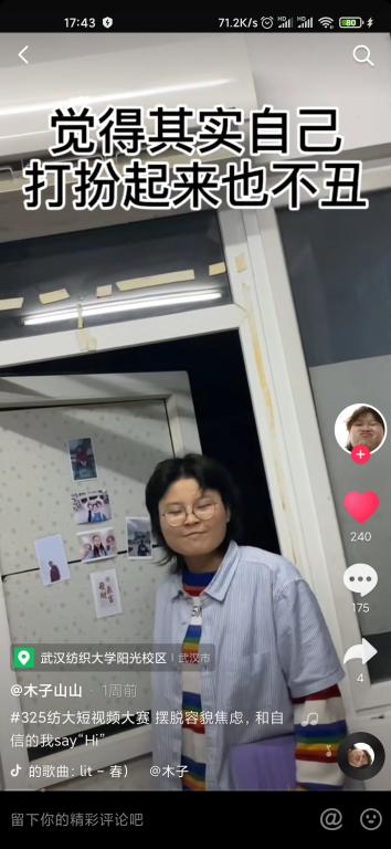 在这次比赛中,同学们用短视频的方式,鼓励自己,鼓励他人。用各种各样的形式展现了自己对于容貌焦虑的理解,他们内心中对于容貌自信的最好诠释就是内在美永远是衡量美的最高标准。他们的参赛作品是此次活动最美丽的一道风景线,也是本次活动的意义所在。