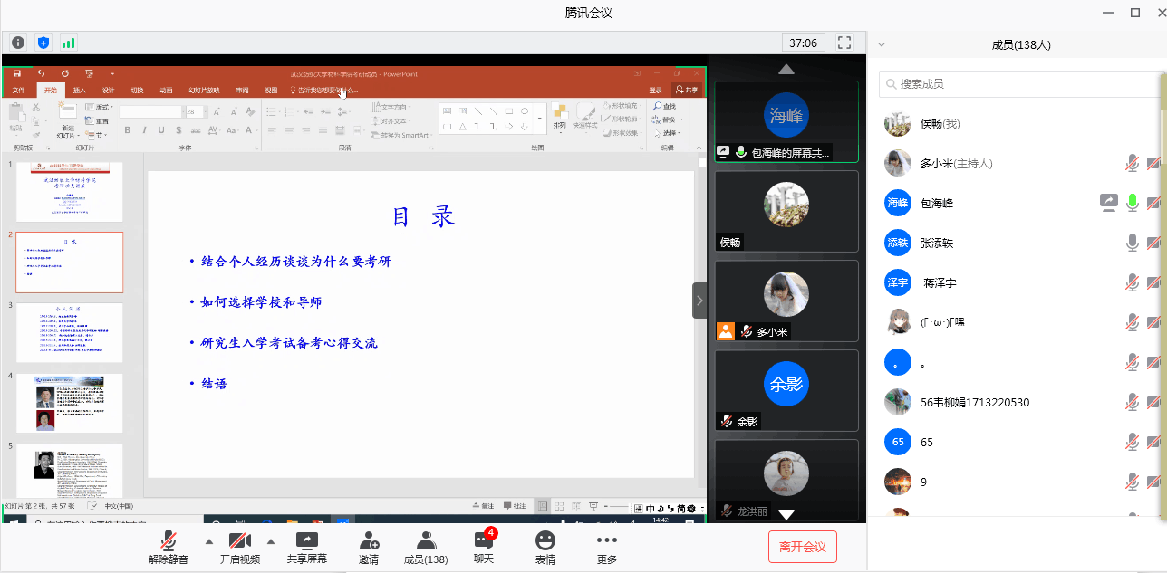 为了更好地为考研学子提供帮助,使同学们对考研有更加深入的了解,帮助大家确立正确的奋斗目标,增强考研信心,提升考研竞争力,英国正版365特邀副经理包海峰教授在腾讯会议平台开展线上考研指导讲座,全体2017级员工,部分2018、2019级员工参加了讲座。
