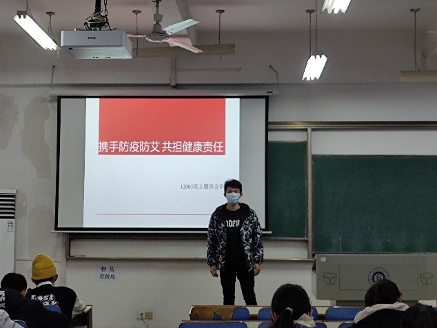 材料12002班班委则组织班级同学集中观看了2020“世界艾滋病日”科普直播活动,学习了蒋洪林、高代明、赵丁源等三位科普专家在线科普的艾滋病病理和预防措施,直播结束后又以有奖竞答的形式帮助同学们记牢有关艾滋病的相关知识。
