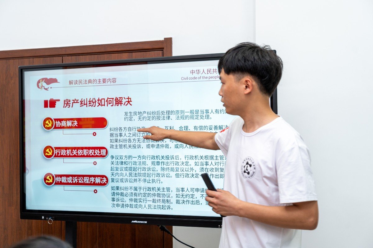 首先,团队成员刘昊冉为社区群众带来了民法第一课,他针对于民众关心的法律问题,以鲜活的案例、详实的数据、规范的条文为居民进行了生动的讲解,课堂气氛融洽,现场互动频繁。参与群众表示这种活泼的宣讲激发了自身的学习兴趣,让够让“冰冷”的法律知识更加通俗易懂,也更能够帮助解决现实问题。