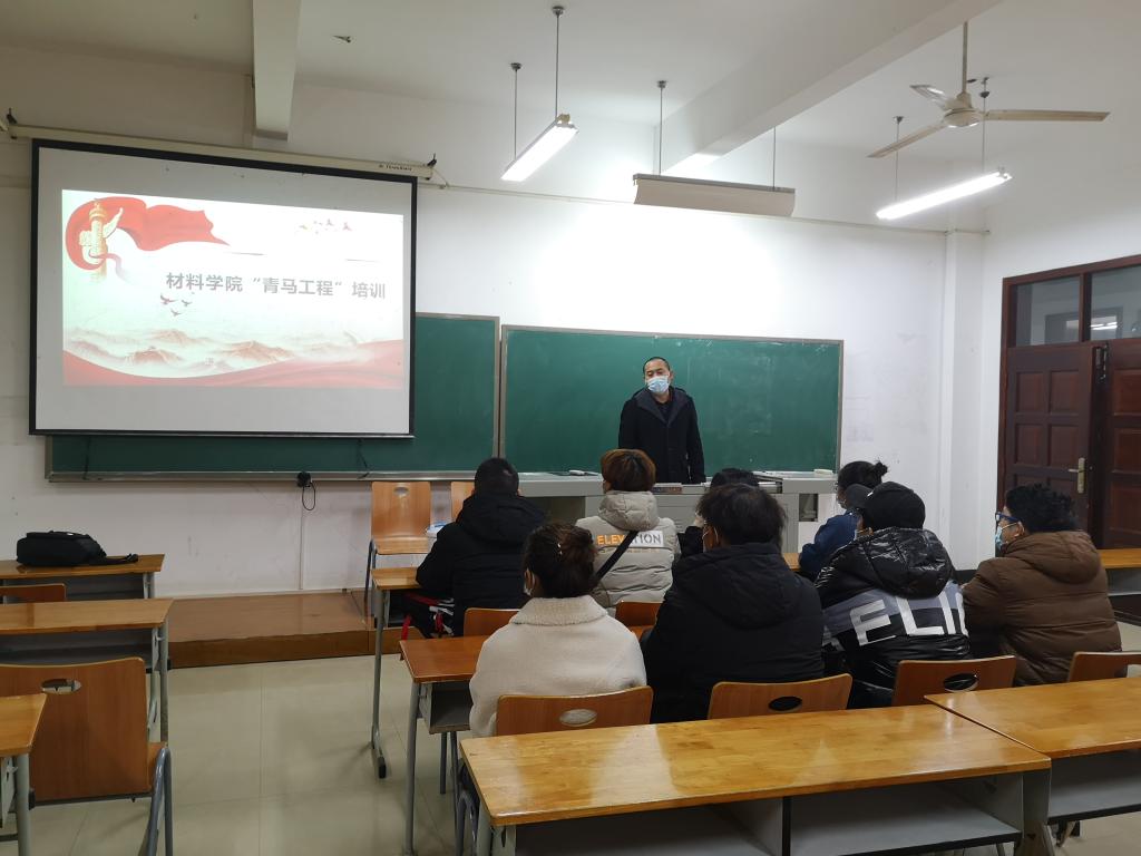 2020年11月27日晚,2020年“青马工程”培训会在6栋教学楼106开展。英国正版365员工党支部书记毛成兴围绕“不忘初心、牢记使命”和 “中国共产党人的精神”主题,向青马学员传递红色精神和理论知识。