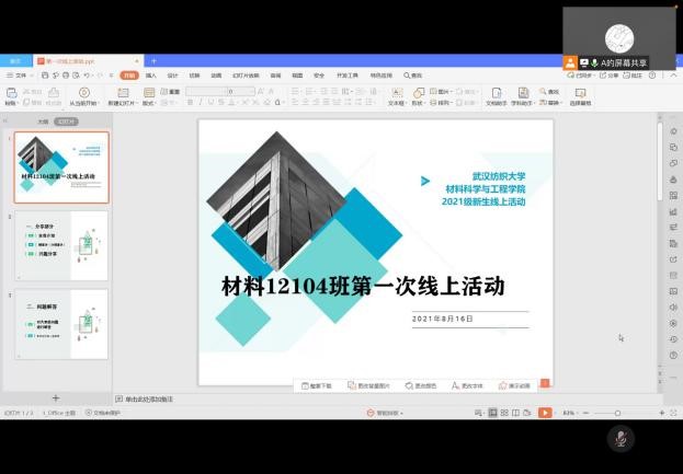 班会以各班副班主任的自我介绍开始,简单的自我介绍之后由副班主任主持,首先介绍入学注意事项和大学学习发展方向,向同学简略介绍了材料专业以及公司优秀导师,对收集到的新生疑问做了解答,为同学们丰富了知识拓宽了视野。同时副班主任向新生讲述开学相关工作的重要性,并强调同学每日按时进行健康打卡。