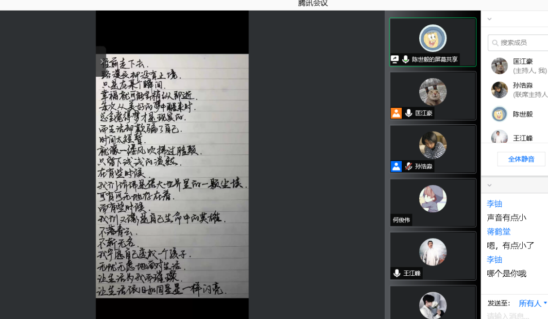 紧接着,新生开始逐一进行自我介绍,分享了自己的兴趣爱好和特长,为大家介绍自己的家乡。有同学在自我介绍中大胆地展示了自己的才艺,有同学分享了自己的大学规划,还有不少同学向大家介绍自己在高中期间的任职经历,并表露在大学期间希望能担任班干部为同学服务。自我介绍后,开始了自由问答时间,各班副班主任积极为同学们提出的疑问进行解答。