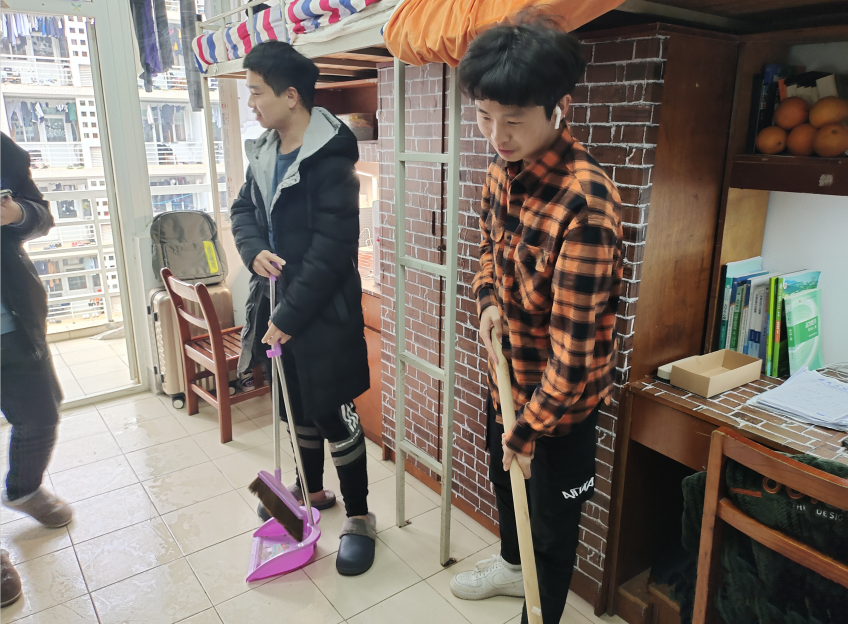 公司积极动员全体同学在返校后对自己的宿舍进行一次全方位的清洁大扫除活动,整理好宿舍内务,营造良好的学习生活氛围。开门开窗通风透气、清理杂物、扫地拖地……同学们化身“保洁员”,撸起袖子干得十分认真。同学们纷纷表示,本次活动不仅整理了寝室卫生,又通过劳动拉近了同学之间的距离,良好温馨的寝室氛围又回来了。