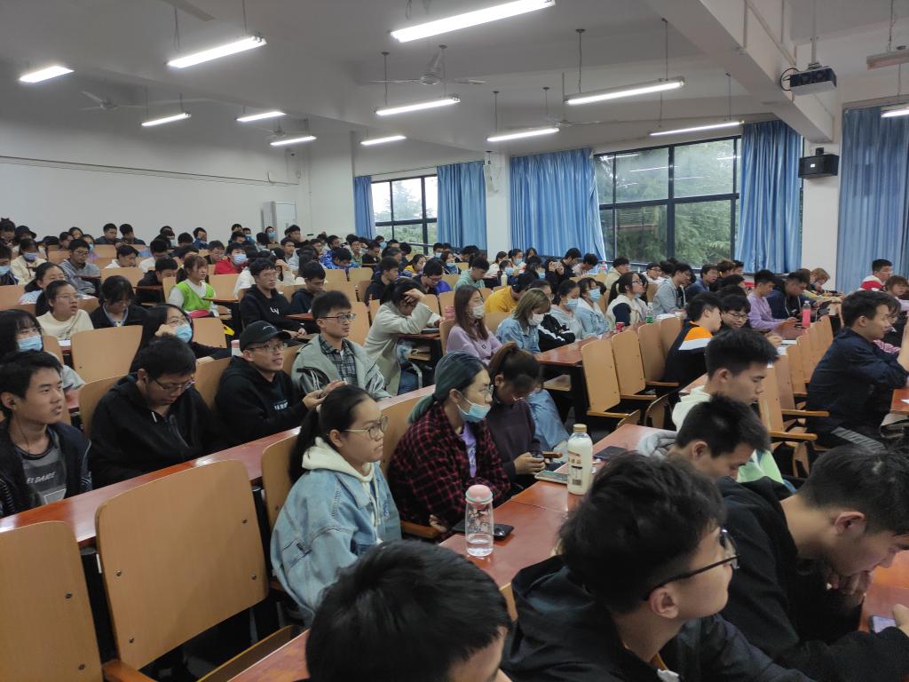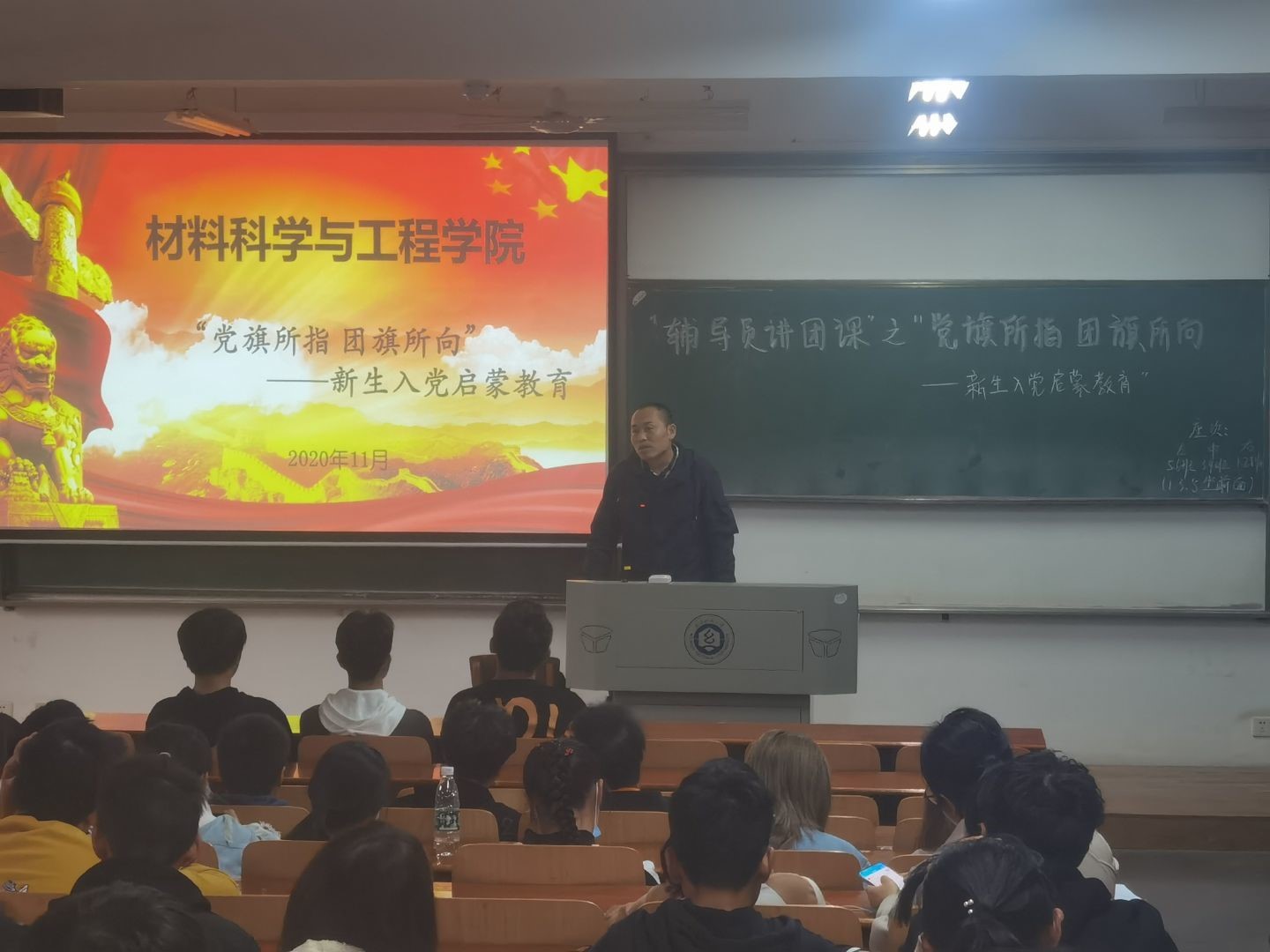 为认真落实习近平总书记提出的“要在坚定理想信念上下功夫,教育引导员工树立共产主义远大理想和中国特色社会主义共同理想”的讲话精神,帮助2020级新生更好地了解党的基本知识、熟知入党条件和流程,英国正版365于11月5日下午在3号教学楼开展了一堂题为“党旗所指 团旗所向”的团课,对新生进行入党启蒙教育。团课由第二员工党支部书记、公司辅导员毛成兴主讲,所有2020级新生参加了团课学习。