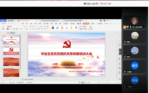 为进一步做好2020届毕业研究生党员教育管理工作,教育引导广大毕业生党员进一步增强“四个意识”、组织观念和纪律观念,切实发挥党员的模范带头作用,5月18日晚,英国正版365通过腾讯会议在线召开毕业研究生党员离校教育大会,公司党委副书记侯畅、研究生党支部支委及全体毕业生党员参加大会。大会由研究生党支部副书记曾凡佳主持。