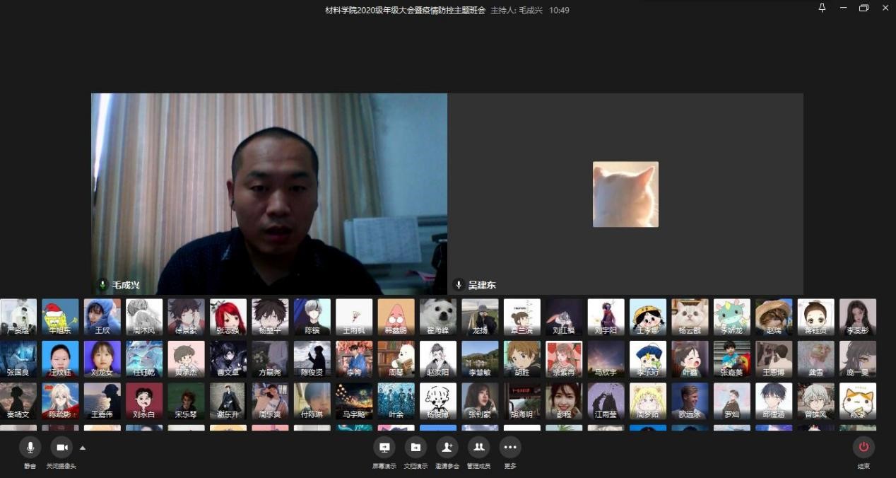 2020级辅导员毛老师首先带领同学们学习了省委书记应勇在全省新冠肺炎疫情防控工作会议上的讲话,从“针尖大的窟窿能漏过斗大的风”的谆谆告诫谈起,强调了疫情防控的长期性、艰巨性、复杂性,要求全体同学增强大局意识和责任意识,坚决抵制麻痹思想和侥幸心理,配合公司和户籍所在地做好疫情防控相关工作。接着,毛老师详细介绍了公司开学前后疫情防控相关工作安排,尤其强调了不得提前返校、坚持每日健康打卡以及返校前14天的健康监测和活动轨迹监测要求。特别提到,处在中高风险区域的同学一律暂缓返校,具体返校时间视情况另行确定。要求全体同学增强法律意识和纪律观念,严守地方的防疫政策和公司的校纪校规,疫情防控期间的违规违纪行为都将从严处理,还就目前公司发生的两起违纪违规同学的处分情况做了警示教育。最后,针对同学们暑假剩余时间的安排,毛老师提出做总结、多读书、爱学习、养习惯等期望,并回答了同学们暑期遇到的各种问题。