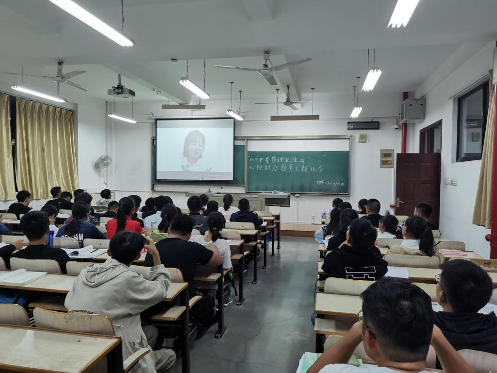 班会伊始,各班级在心理委员的组织下,集中观看了“世界精神卫生日”的宣传视频。视频观看结束后,各年级辅导员、班主任、心理委员引导班级同学们展开了讨论和交流。