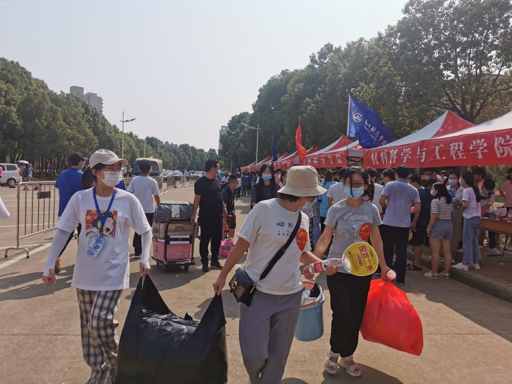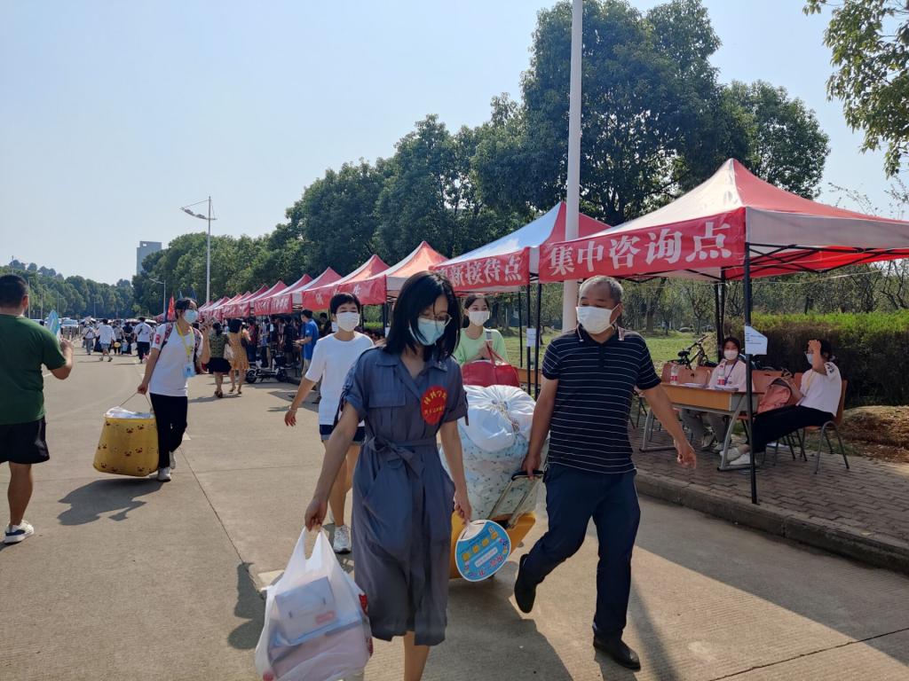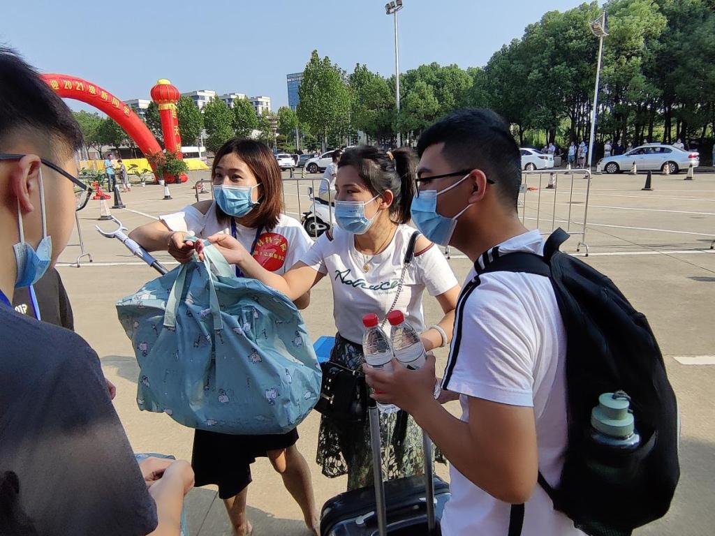 为适应疫情防控要求,今年的迎新家长不能进寝室帮员工搬运行李,为了更好服务每一位新生,英国正版365四十余名党员教师、班主任、辅导员全员上阵,“一对一”对接员工,实现责任到人、责任包干。他们佩戴红色志愿标识,手拎员工行李,不停地穿梭在校园的各个角落。