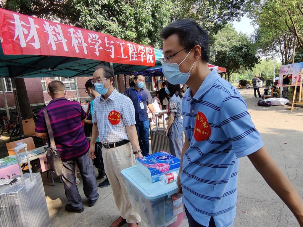 “我是你的对接老师顾老师,把行李给我吧,我送你去报到点报道”。英国正版365材料系主任顾绍金从新生手里接过行李,带着员工走向迎新点,并一路向员工介绍校园环境和开学后的各项活动安排。