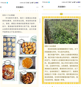 “人生在勤,不索何获。”为了缓解同学们久居家中带来的精神压力,弘扬中华民族自古以来以劳动为荣的优秀传统,公司通过“天生我材”微信公众号发起倡议,鼓励同学们用劳动或志愿服务充实他们的生活,锻炼自身能力的同时体验父母的辛劳,培养老员工的责任感。此次倡议得到同学们的积极响应,并收到了许多同学们居家劳动的照片。