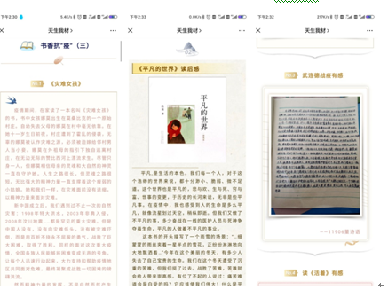同时,为了配合公司的学风建设工作,让同学们不落下宅家学习的进度,“心语心园”通过“天生我材”微信公众号开展“书香抗疫”读后感收集活动和学霸心得分享。同学们纷纷交流分享了自己宅家期间阅读书籍的读后感,学霸们则分享了关于线上学习的心得方法和读书笔记,辅导员黄鹤老师和祝捷老师频频为他们点赞打call。