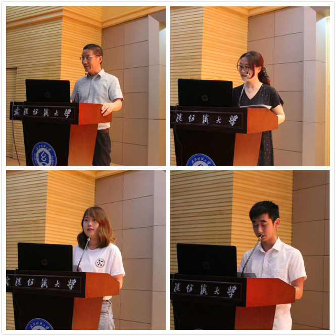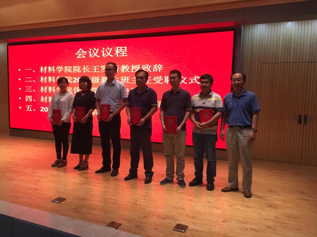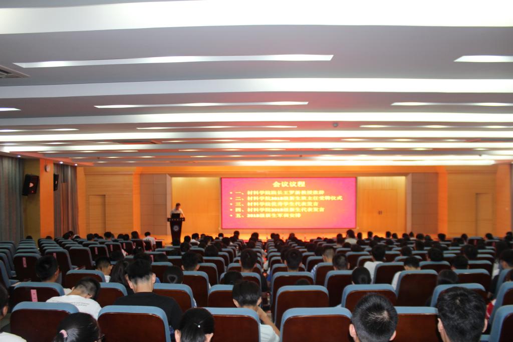 随后,进行大会第二项——新生班主任受聘仪式,由罗书记为新生班主任颁发聘书,并合影留念。在一阵掌声中,大会第三项开始,由优秀员工代表——材料科学11601班卫欣怡同学发言。卫欣怡从学姐的角度鼓励新生既要学会独立,也要学会为人处事,同学之间要互相帮助,更重要的是大学四年期间应确立自己的目标,大学学习需要专注和勤勉。随后,新生代表——11805班伍新琛同学上台发言,他号召新生们要努力提高实践能力,从小事做起是提升自己的关键,并会朝着自己的目标奋力前行!同学们纷纷报以热烈的掌声。