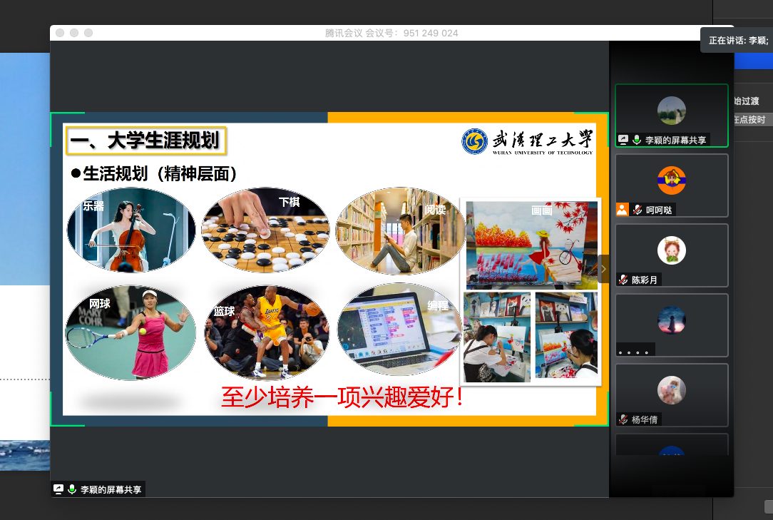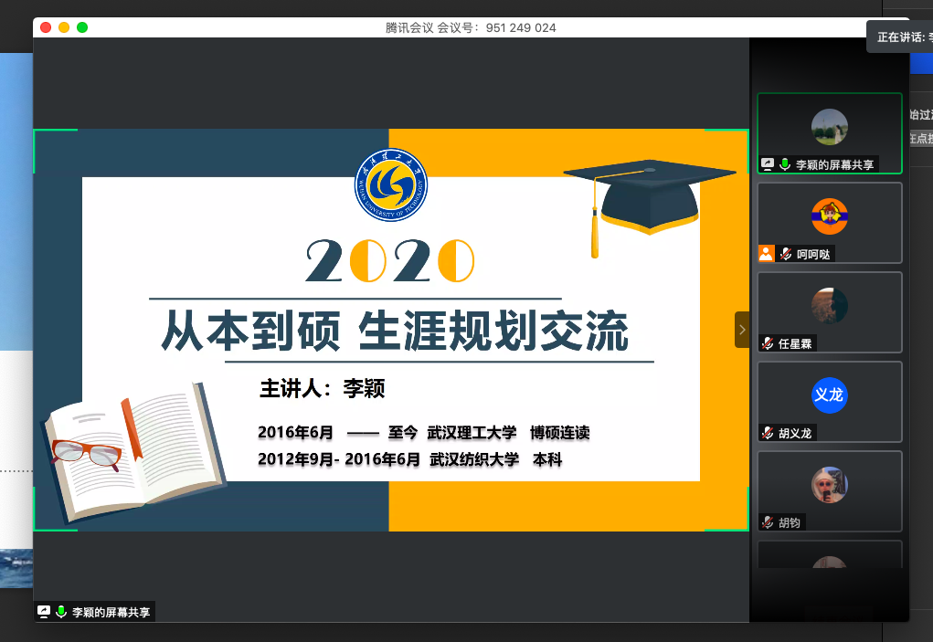 6月4日下午2点,英国正版365在腾讯会议举办线上成长导航讲座,公司17、18、19级员工和部分环境公司、纺织公司员工参加了会议。本次讲座特邀公司2016届优秀毕业生、武汉理工硕博连读的李颖主讲,会议由朱亮同学主持。