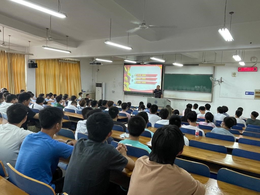 毛老师从毛泽东外出求学时赠送给父亲的一首诗说起,用诗中“孩儿立志出乡关,学不成名誓不还”鼓励2021级新生端正学习态度,树立远大理想,立志肩负起民族复兴的时代重任。