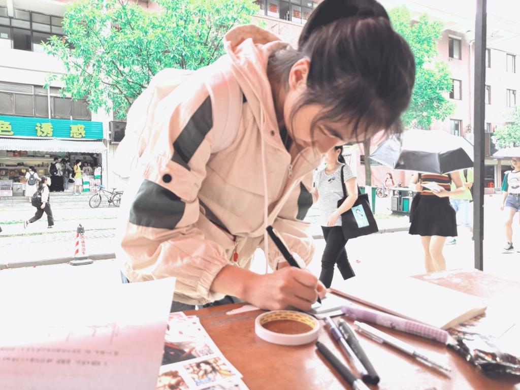 此次主题活动主要有“心理树洞”和“我爱我,祝福我”两种活动内容。活动现场摆放了心理树洞箱,同学们从活动箱中抽取问题,在便签上写出自己的答案。同时同学们也可以直接在便利贴上写出自己对自己的认识,对自己的期望和想对他人说的话等内容贴在“我爱我,祝福我”的宣传画板上。